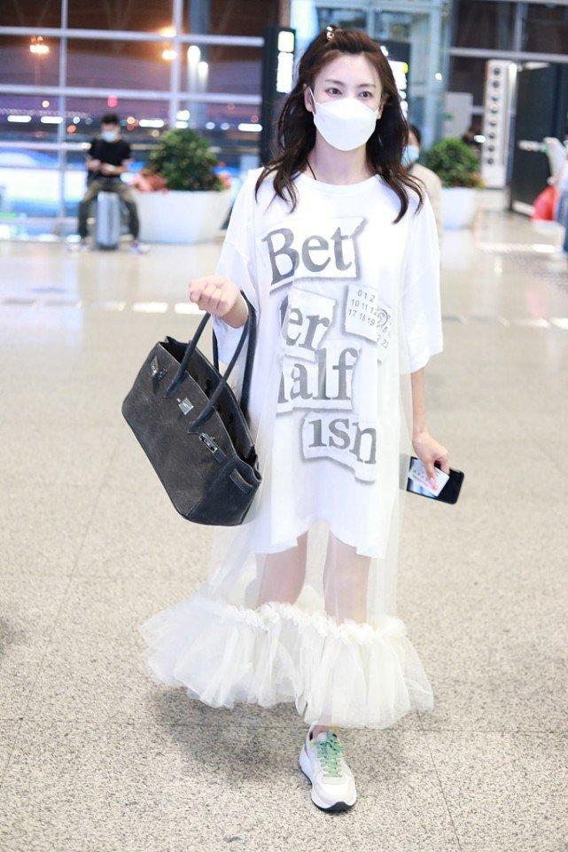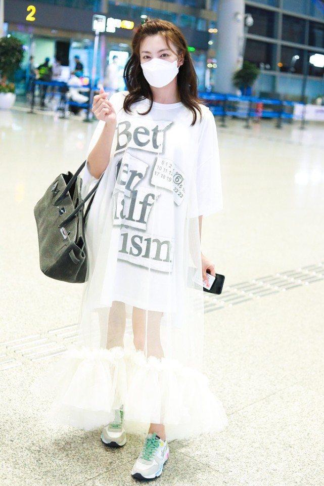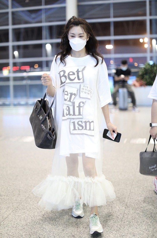 In the photo, Zhang Yuqi is wearing a white gauze skirt with a white T-shirt underneath. In fact, this T-shirt or this white gauze skirt looks pretty good alone, but when paired together, it feels a bit weird. It’s not that good-looking, and it really makes you look short!