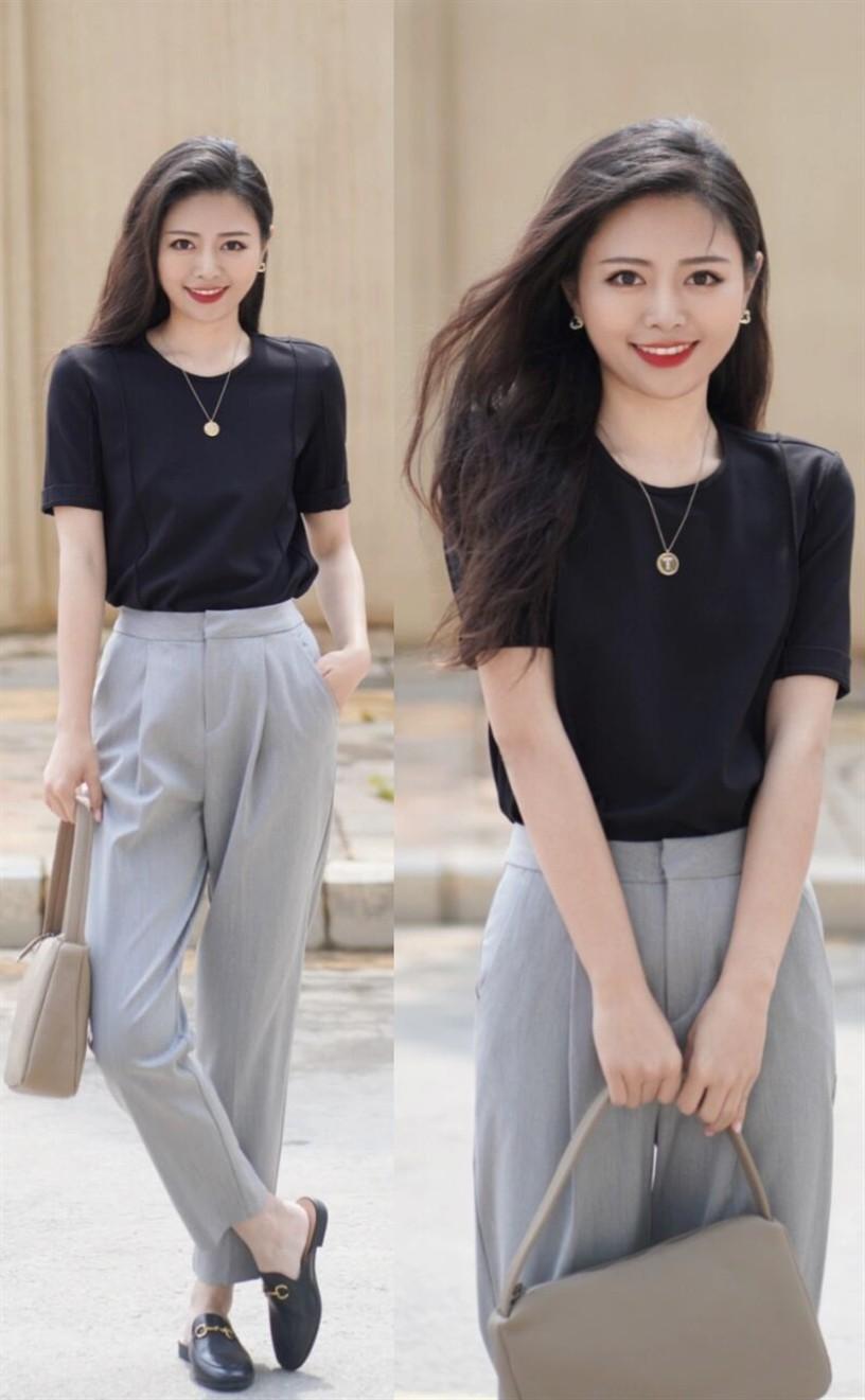 As everyone knows, the formal feeling inherent in suit pants is very strong, and no single product can beat it, even with feminine styles. Pair it with a grandma T-shirt and you can still look formal and capable. Therefore, working ladies should stop wearing suits and trousers as a set. Wear them like the blogger, which not only creates a sense of workplace atmosphere, but also brings a bit of stunning beauty to people, making them look very high-end.