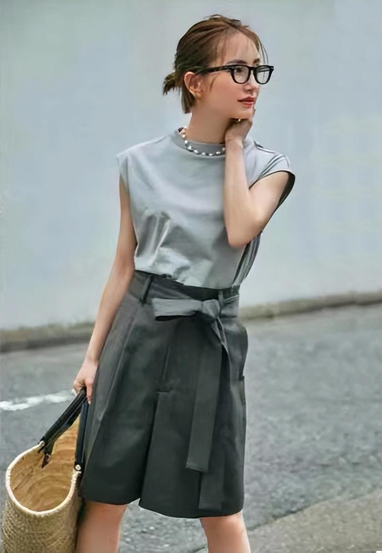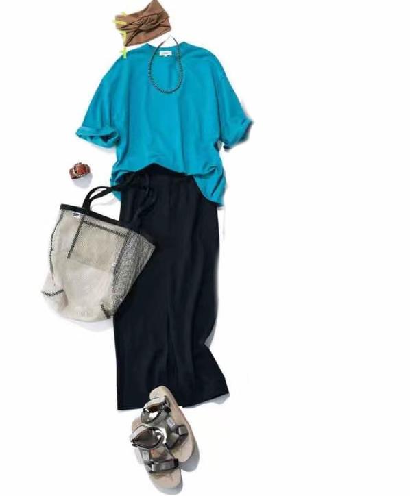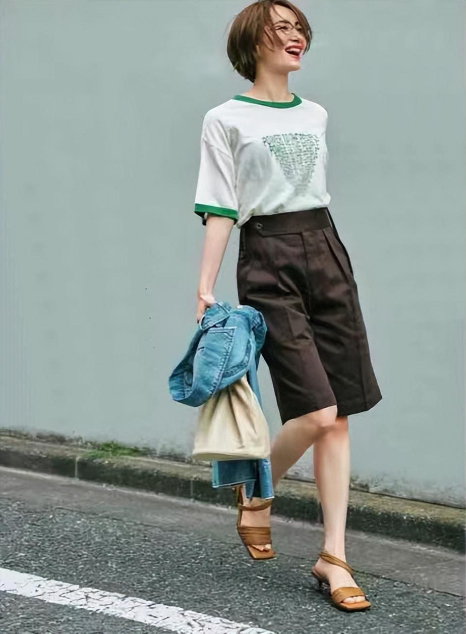 Shoulder layering in the Japanese style is common, making ordinary T-shirt + mid-pantsContains layered beauty. The atmosphere of the loose trousers highlights the slender calves, making it look slimmer.