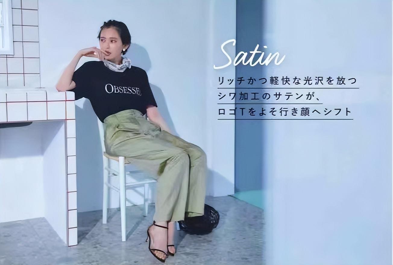 Delicacy and gloss like silk, acetate, tencel, satin It instantly makes a basic T-shirt look glamorous. If you wear wide-leg pants, you can take this chic look to the extreme.