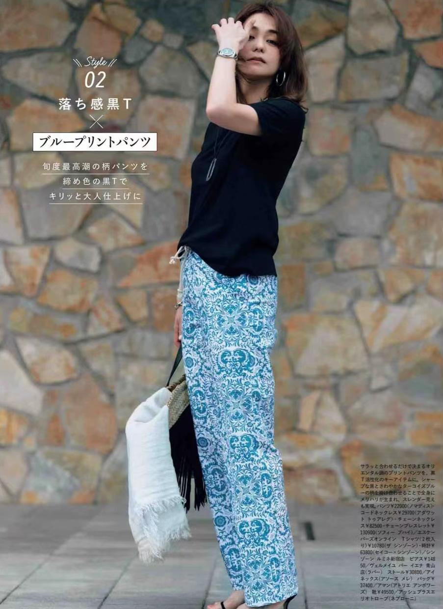 For summer pants, try to be loose. Once tightened, the tension will destroy the beauty of the print. In addition, no matter what the color is, black, white, beige and gray T-shirts are more than enough.