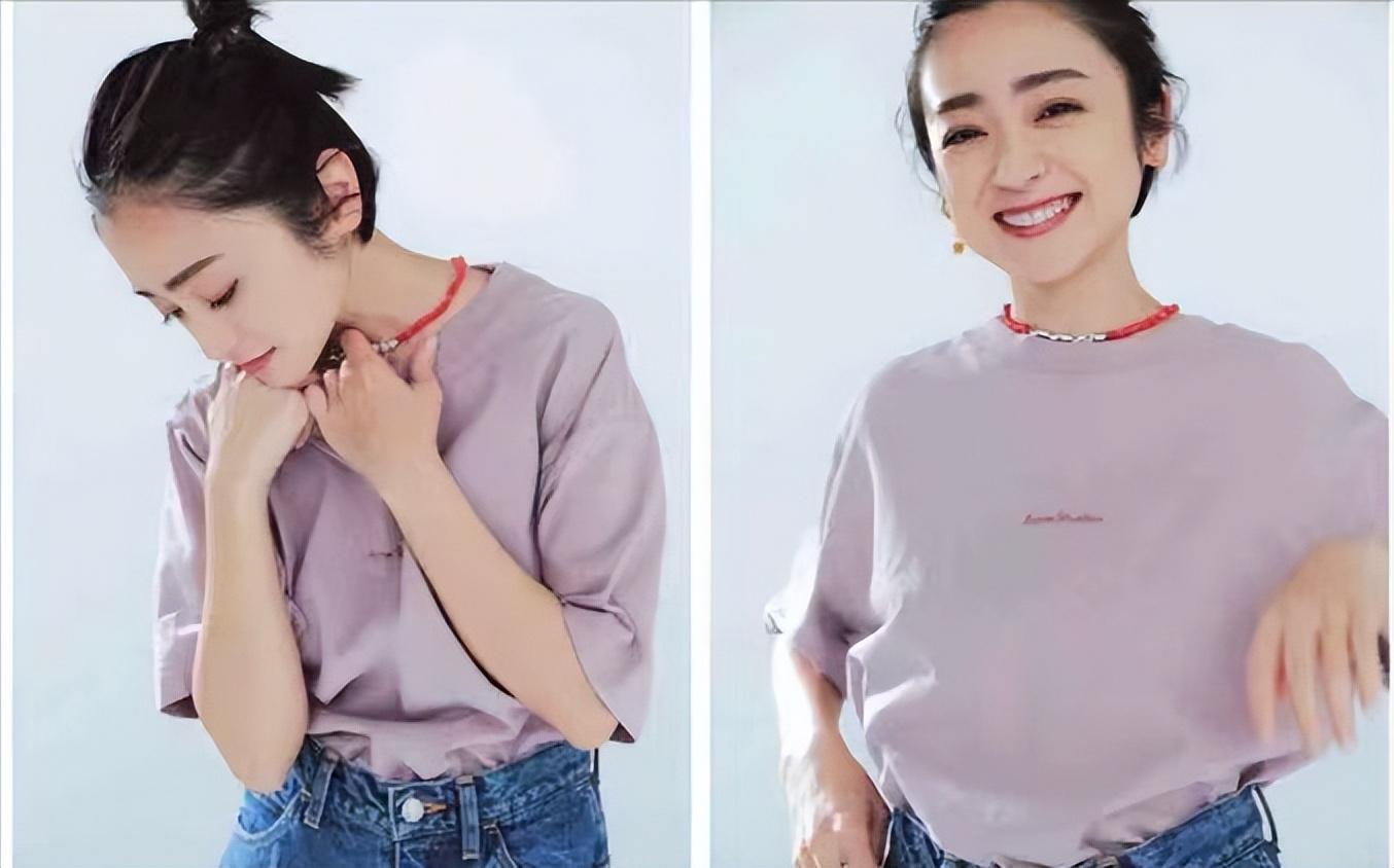Beige T-shirt + pink pants, sweet yet elegant, and paired with a sweet smile, it looks really good.