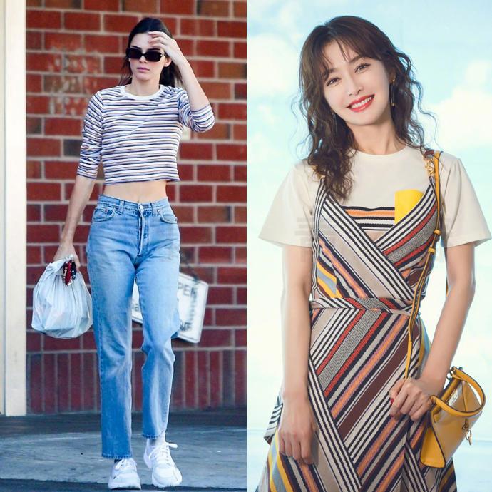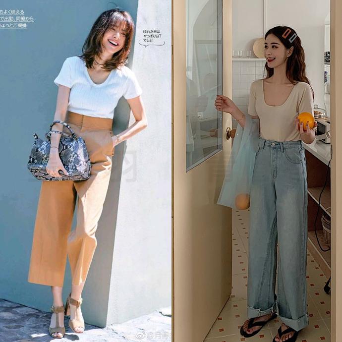 This white T-shirt paired with striped wide-leg pants looks very comfortable at first glance It is very breathable. My eldest cousin is simply the spokesperson of T-shirts. Polo collar T-shirt and denim wide-leg pants. These slender long legs are the envy of others.
