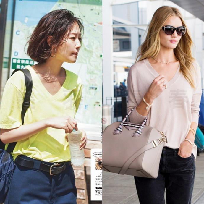 Compared with other picky necklines, the V-neck simply accepts everyone, no matter what face shape or body shape you have, There is nothing that V-neck is not suitable for. V-neck can elongate the proportion vertically, making the neck appear thinner, the collarbone more delicate, and the face as small as a palm. If you really don’t know what neckline T-shirt to choose, there is nothing wrong with choosing a V-neck. A V-neck can solve all your upper body body bugs with a V-neck in hand.