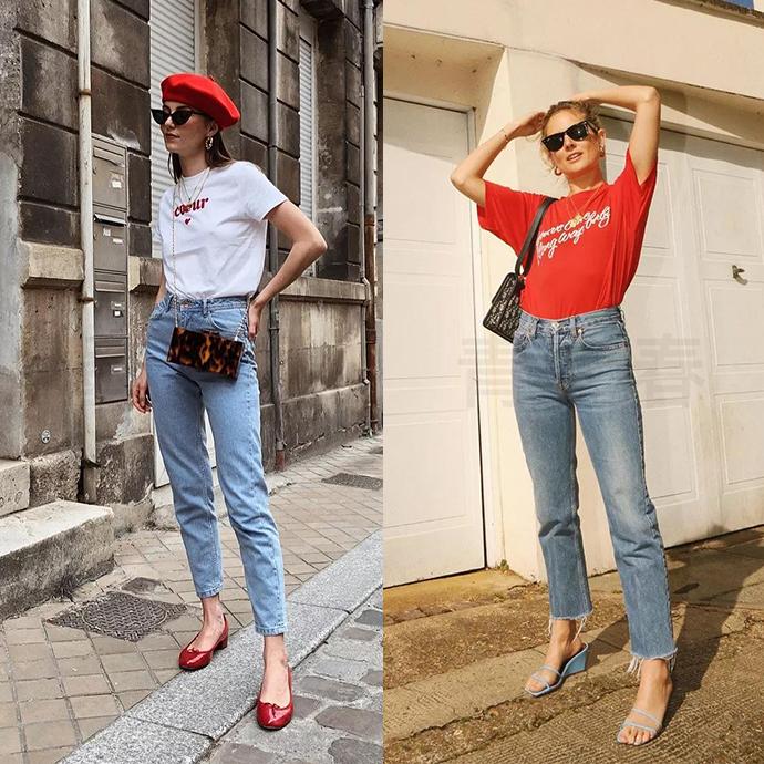 What is the most classic combination with a T-shirt? Of course, it’s jeans. Who doesn’t have a pair of jeans these days? A white T-shirt paired with basic jeans is fashionable and elegant. The beret and red shoes are used as embellishments, which is very eye-catching. I don’t want to wear a white T-shirt. A red T-shirt is warm enough. Paired with jeans, it looks fashionable and stylish. Paired with a pair of sunglasses, it looks a bit handsome.
