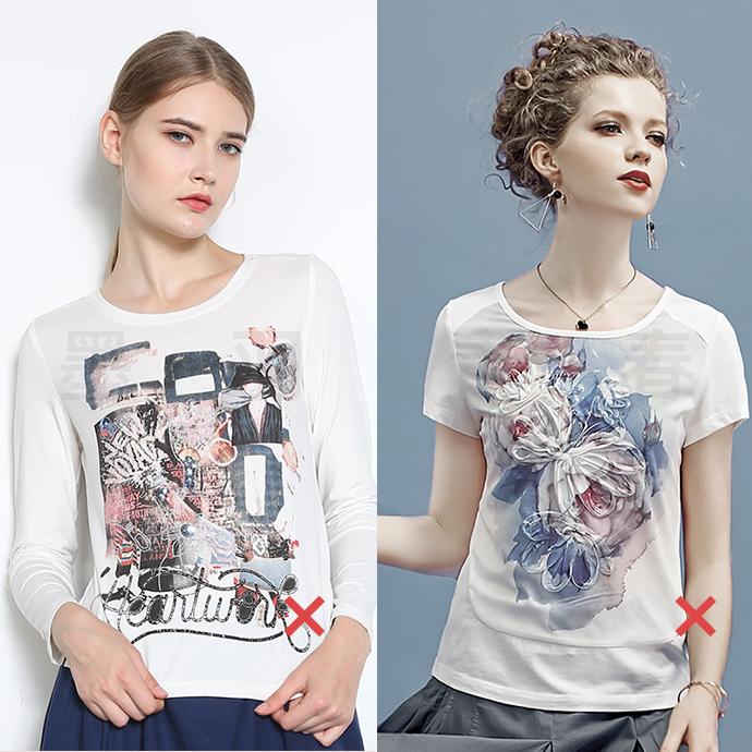 Although T-shirts have many elements,it is not recommended that the entire T-shirt be covered with various elements such as prints, cartoons, letters, etc., the first one visually looks very messy and too rustic.