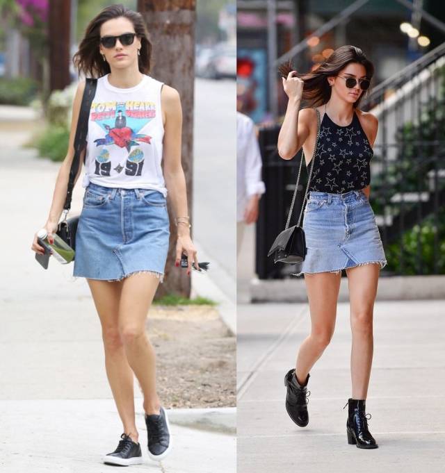 Pair a cut-sleeve T-shirt with a short skirt to show off your good figure. It’s super cool to wear in summer!
