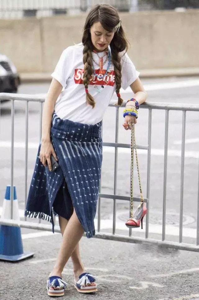 Pairing a solid color T-shirt with an ordinary denim skirt will accidentally make you look like a passerby, but a printed T-shirt that shows your personality paired with a fashionable raw edge skirt will not look the same. monotonous.