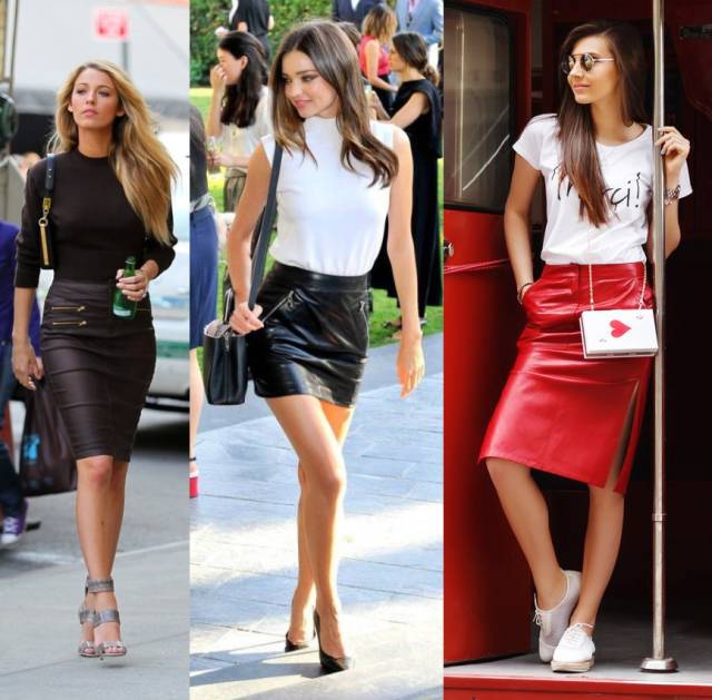 T-shirt Although it has the effect of reducing age when paired with an A-line skirt, it always lacks a bit of flavor. If it is replaced by a leather skirt, it will immediately look different. No matter what the length, it is full of femininity.