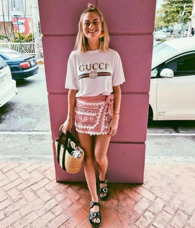Pair a designer skirt with a solid-color T-shirt. On the contrary, pair a letter-printed T-shirt with a simple skirt, which will be visually coordinated and beautiful. .