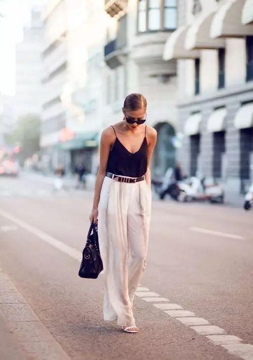 Neutral Style wide-leg pants, paired with delicate suspenders, still look gentle and sexy.