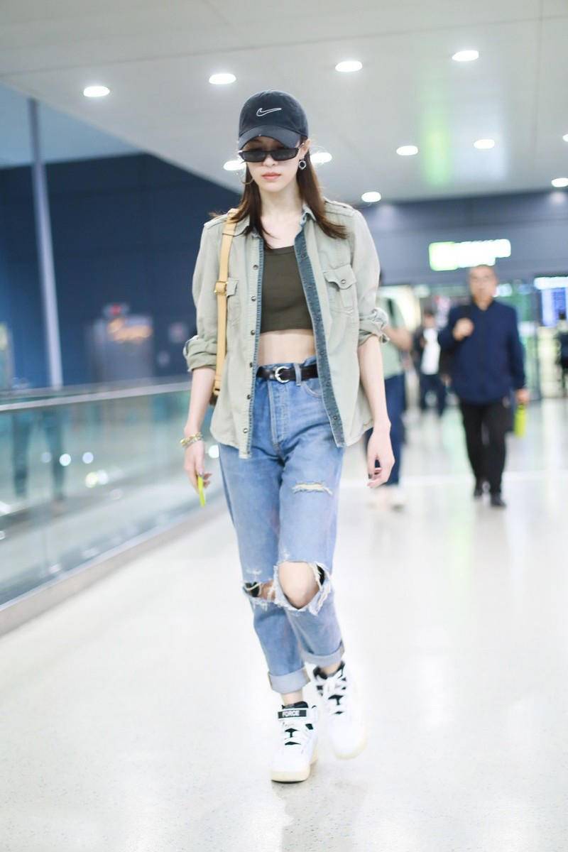 This is a fashionable outfit. High-waisted jeans can allow girls to better show off the lines of their legs. This is a fashionable outfit in summer. Oh!