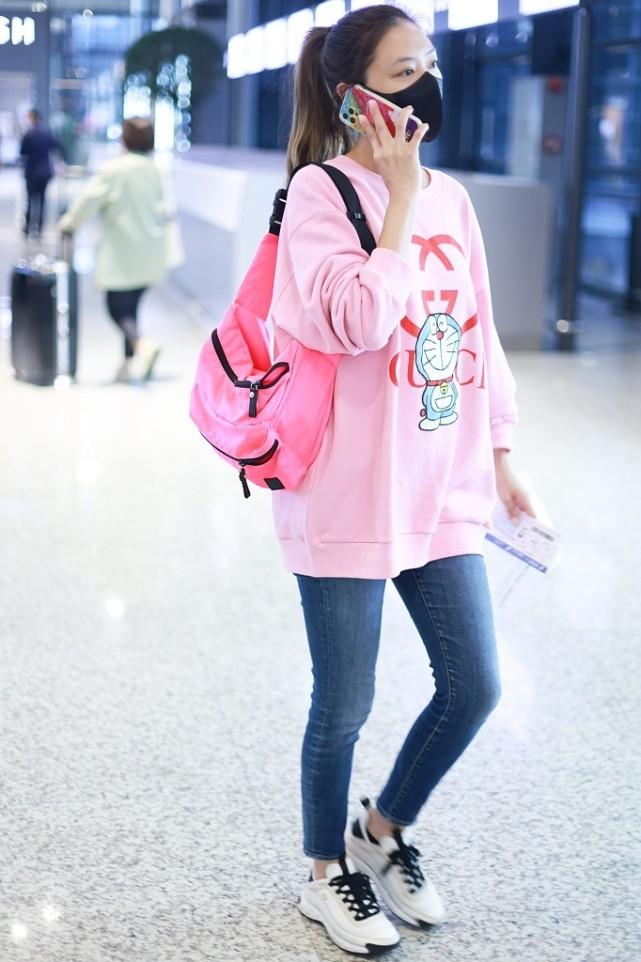 Ying Caier is unique. She not only chooses a pink sweatshirt to show off her fashion, but also matches it with a backpack of the same color, making her whole body look more stylish. The combination is girlish and sweet, yet simple and capable, complementing her bold and bold personality.