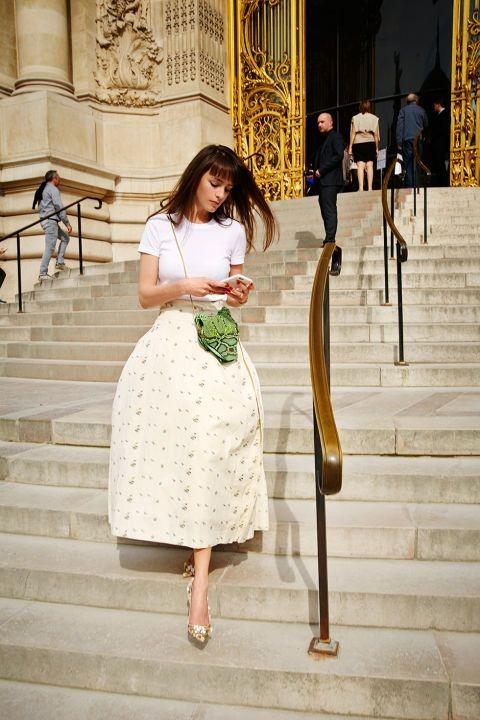 The reason why cold colors are suitable for summer is because their color sense is not low, and their existence It feels good, so it is easier to be accepted in the matching. Pair a white T-shirt with a green skirt, and add sandals to create a fresh summer feel. No matter how you shoot, it will be fashionable.