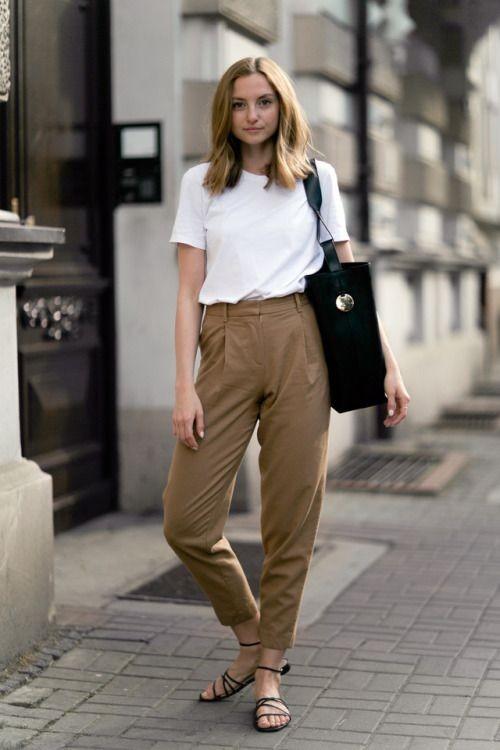Pay attention to the “white T-shirt”. If you want to get rid of the feeling of pajamas, you must find the fashionable angle and use the version The shape and lines are highlighted. At the same time, the shape and color of the pants should be remembered to achieve an overall combination to avoid the little minefields of dressing.