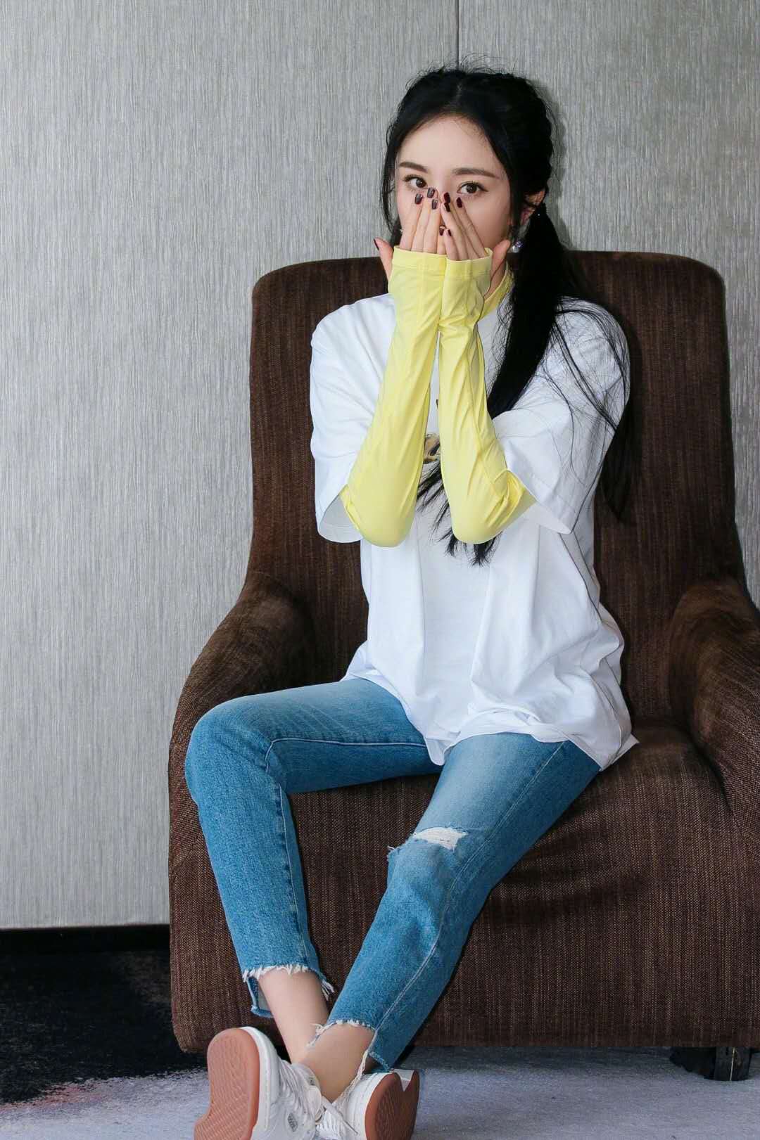 White T-shirt + base sun protection shirt, unlock new ways to wear white T-shirts, even sun protection clothing Automatically omitted. Yang Mi’s body is a good example.
