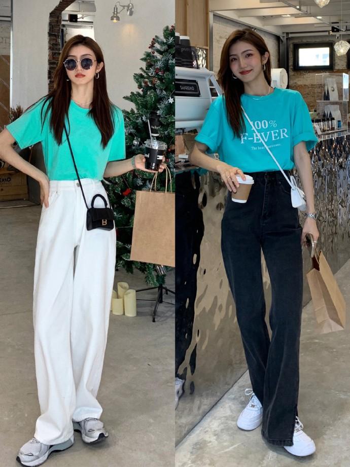 Use these black or white T-shirts to create a stylish look that is both simple and attractive, Adding letters on the chest to modify it can also break the rules and make it look more fashionable.
