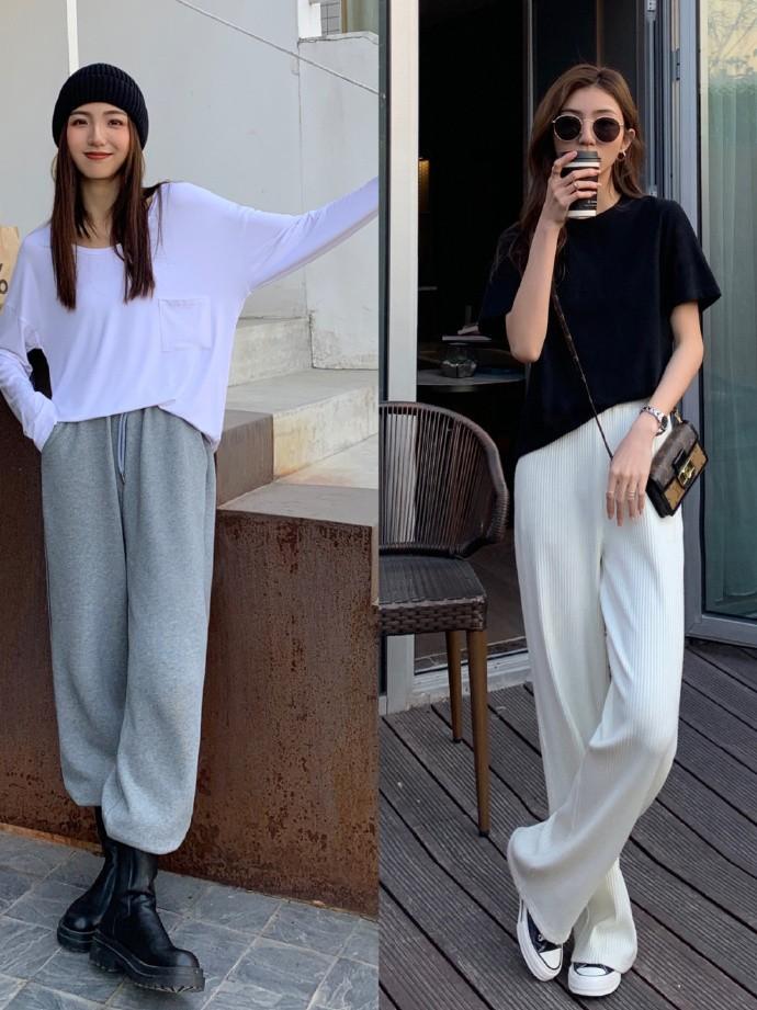 Just like the blogger paired these sweatpants with a simple solid color T-shirt. Although they are all basic styles, they are still quite fashionable overall. Yes, you can refer to it at ordinary times.