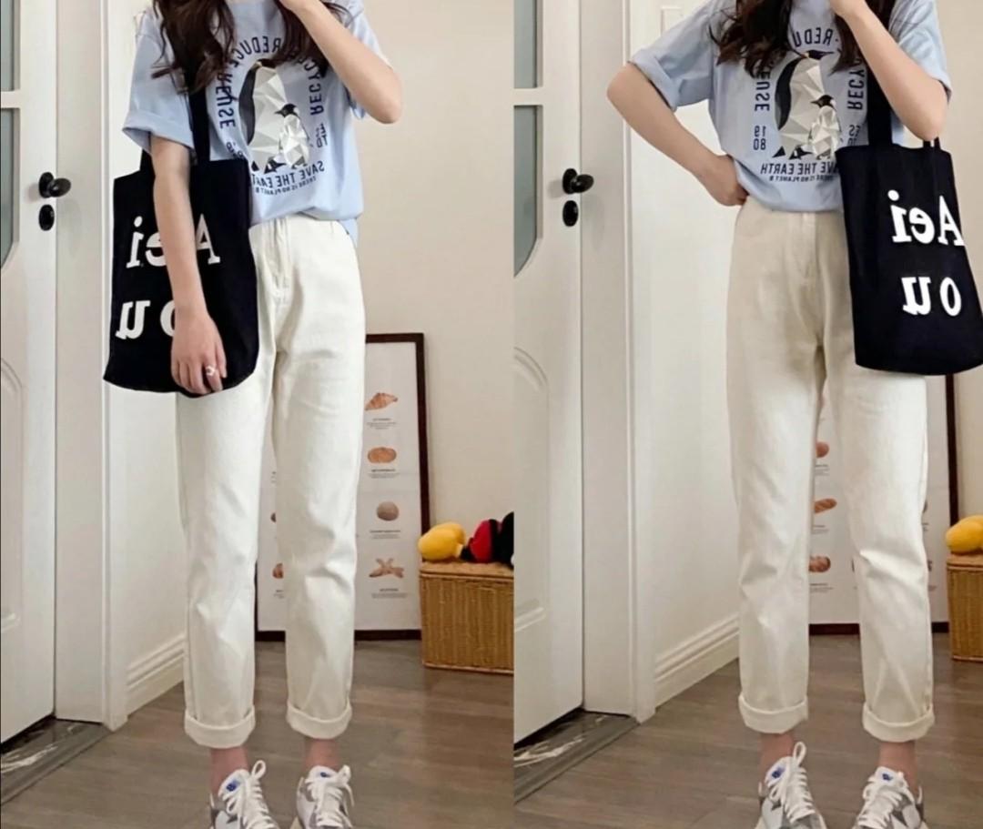 Shorter T-shirts can create a high-waistline look, adjust the figure, and modify the length of the legs. There is not much emphasis on the choice of color. You can like the versatile function of black, or you can like the refreshing atmosphere of white.