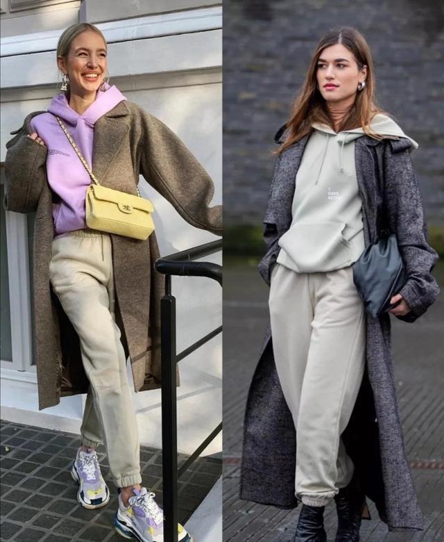 In this group of looks, a hooded sweatshirt is used to enhance the burst of vitality, and sweatpants are used to consolidate this style. The overall sense of frankness is stronger. Women who usually like to wear a gentle and elegant look can subvert their image by dressing like this.