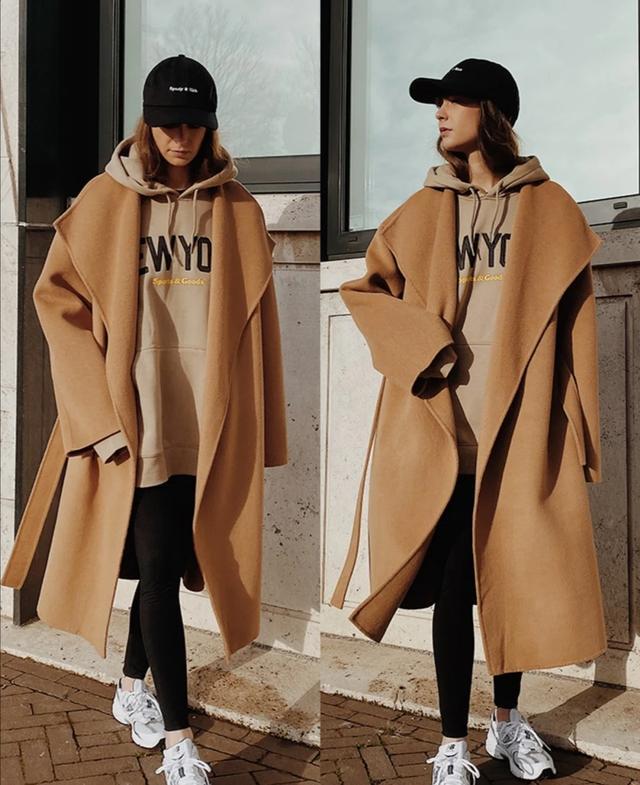 A long, roomy coat can be combined with a casual and sexy hooded sweatshirt to enhance the release of this style, and it is easy to wear Wear with style.