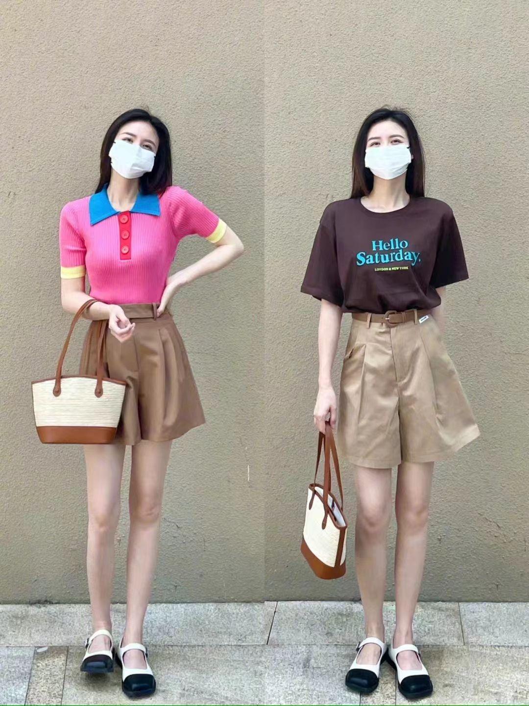 Wearing a T-shirt with shorts in summer, high-waisted shorts can smoothly create a strong neutral style, and can also highlight the vitality of summer in terms of color matching.The style is more obvious and the body proportions are shown, making the shape better-looking and more fashionable.