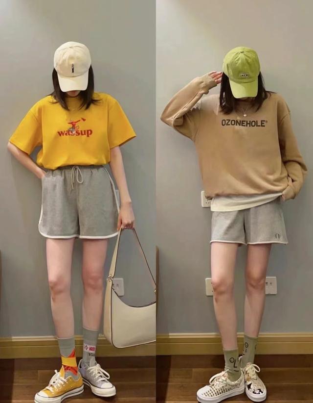 If you choose a loose-fitting T-shirt, it is recommended that girls wear slim-fitting trousers or shorts with a loose fit Slim-fitting matching techniques will make girls look slimmer, which is a slimmer dressing rule.
