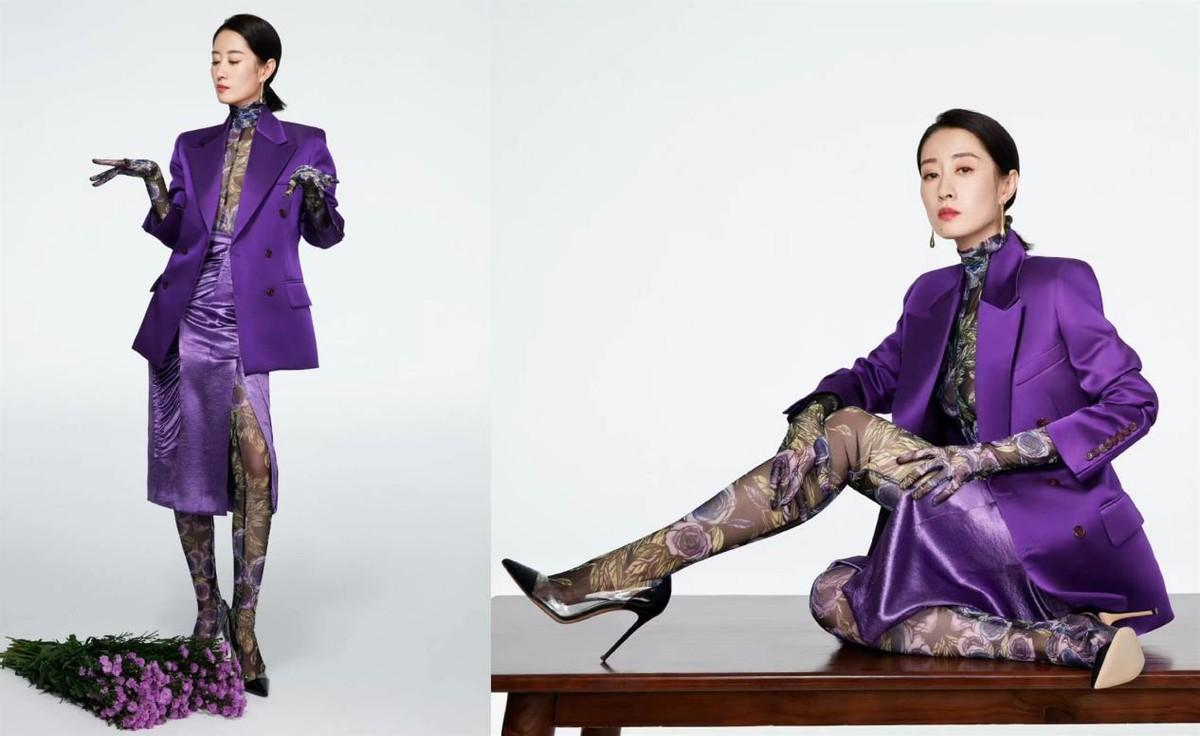 I have to say that purple suits are really charming, especially the deep purple + solid color. Although they look a bit old-fashioned, they are more suitable for women over 40, showing a unique temperament. It can also reflect the charm of the outfit.