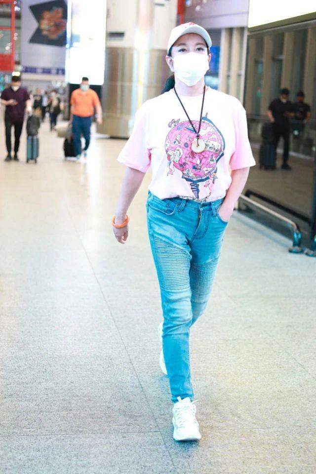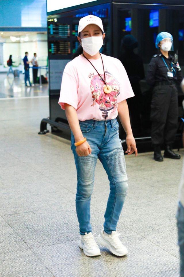 However, Liu Xiaoqing is still discerning when it comes to color matching and pattern selection. She not only chose a light pink T-shirt to make her The overall aura is much softer and purer. At the same time, large-area printing patterns are used to increase the overall sense and youthful vitality, making the whole outfit look full of age reduction effect and always on the girlish route.