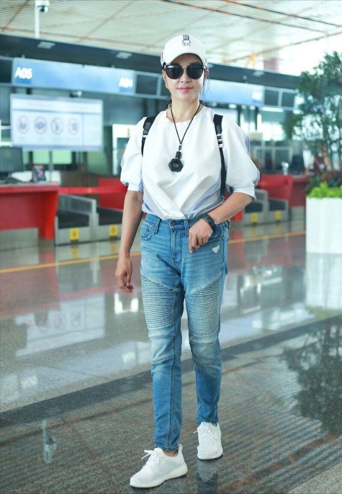 Through observation When it comes to Liu Xiaoqing’s personal clothes, you will find that jeans appear quite frequently. It can even be said that this is her little secret to highlight her youthfulness.