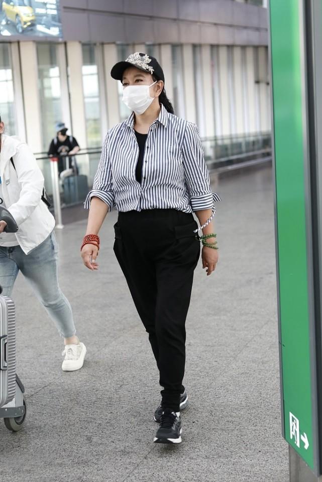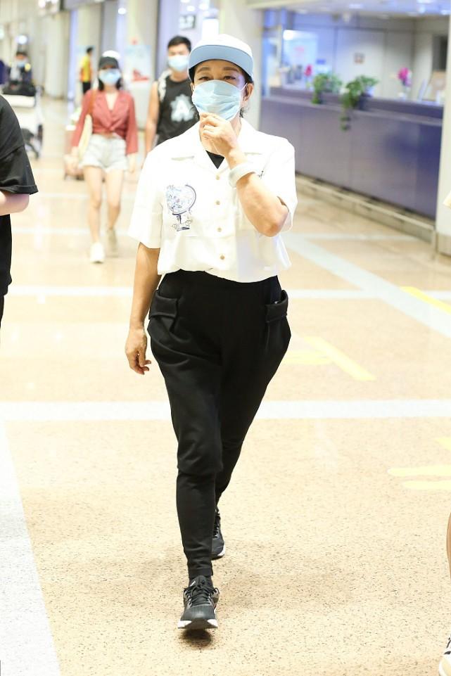 Liu Xiaoqing, who was born in the 50s, does dress very young. A slightly loose white shirt and black trousers are ordinary, but she chose high-end When worn outside the waist, it enhances the looseness of the top, perfectly bids farewell to the business style of black and white, and makes the look more youthful and energetic.