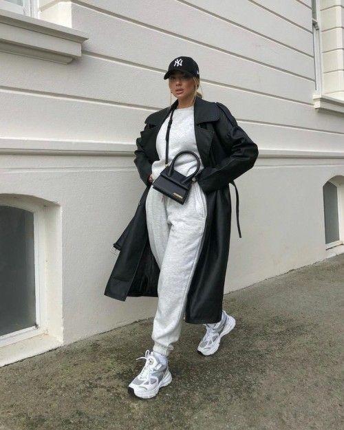 I have to say that the combination of these two items is stunning! You can choose a solid color for your coat, especially black which is more versatile. You can wear it with a combination of sweatshirt and sweatpants, which looks casual and sporty. If you take off the coat, you can do sports activities. If you put on the coat, it will be a trendy match.