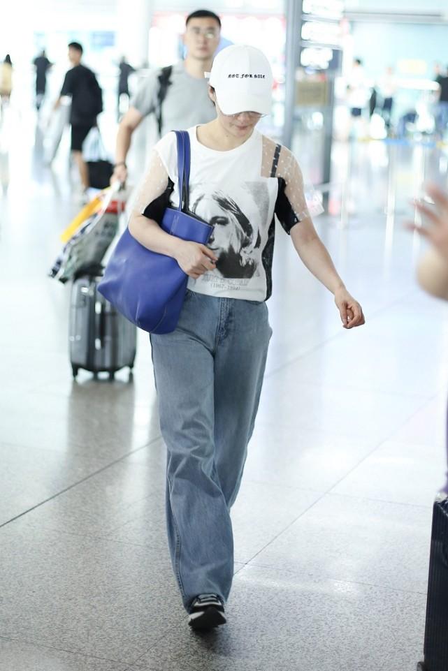 Jiang Qinqin showed his elegant and clean temperament through a casual T-shirt and jeans, while adding white sneakers and a baseball cap. It increases the age-reducing effect and highlights the youthful and sporty style, making Jiang Qinqin look younger and more relaxed and casual. The simple combination of single items is very flattering to the figure.