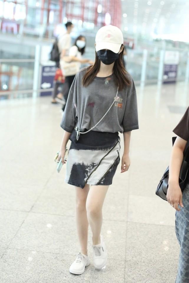 Of course, this kind of casual outfit has high body requirements, not to mention that only thin shoulders can wear a wide T-shirt. Light and casual, the straight skirt requires slim legs for support to create a superior visual effect. Girls with the same superior figure can use Li Qin’s outfit as a template to look unique and fashionable.