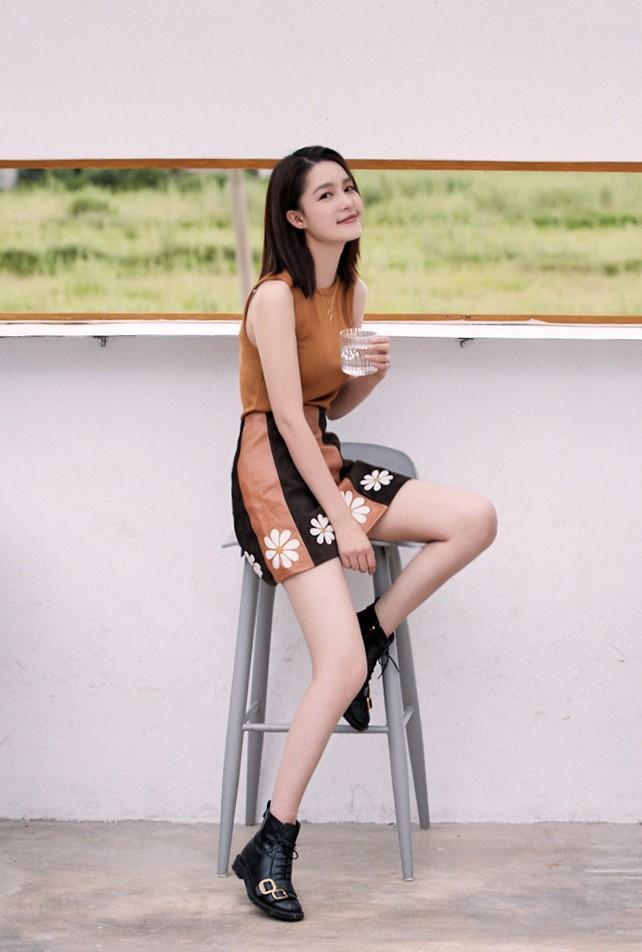 The combination of simple sports shorts and white T-shirt was worn by Li Qin in a fancy way. She put on a pair of A-line sports shorts over the sports slim trousers to make the whole body look more elegant. The layering of the outfit is greatly increased. At the same time, the black and white color scheme is simple, low-key and casual, and paired with a pair of beige white shoes, it is more energetic, making the whole outfit simple and brilliant.