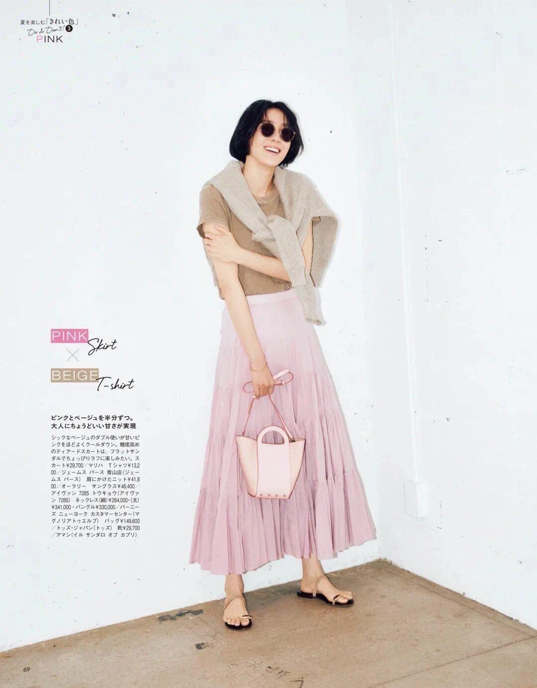 Pair it with a simple T-shirt and tuck in the waist to reveal the waistline and elongate the legs. It can also be worn with high-heeled sandals. Can be paired with canvas shoes to make the overall look small and elegant.