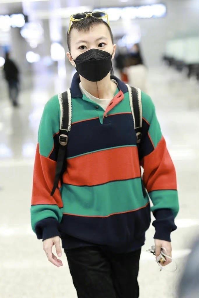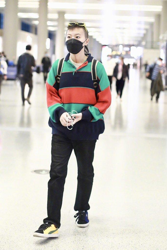 Dou Jingtong’s matching style is usually more casual, this time he matched it with fashionable ones Striped sweatshirts also highlight this retro style. Fashionable green, red, and navy striped sweatshirts make the whole person fashionable and individual. The combination of bright colors can also reflect the unique charm and full of high-end sense.