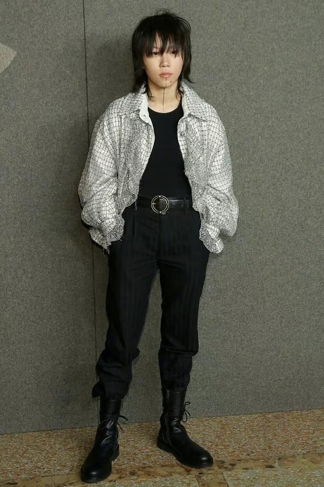 The unique silver jacket reflects Dou Jingtong’s sense of fashion. This silver color is a relatively simple color, and it looks fashionable and individual when paired with it. Combined with a black base layer underneath, it can also be layered and layered. Strong. The lower body is paired with black overalls, and the pants are tucked into boots, which can modify the proportions and show the long legs. The aura is really strong.