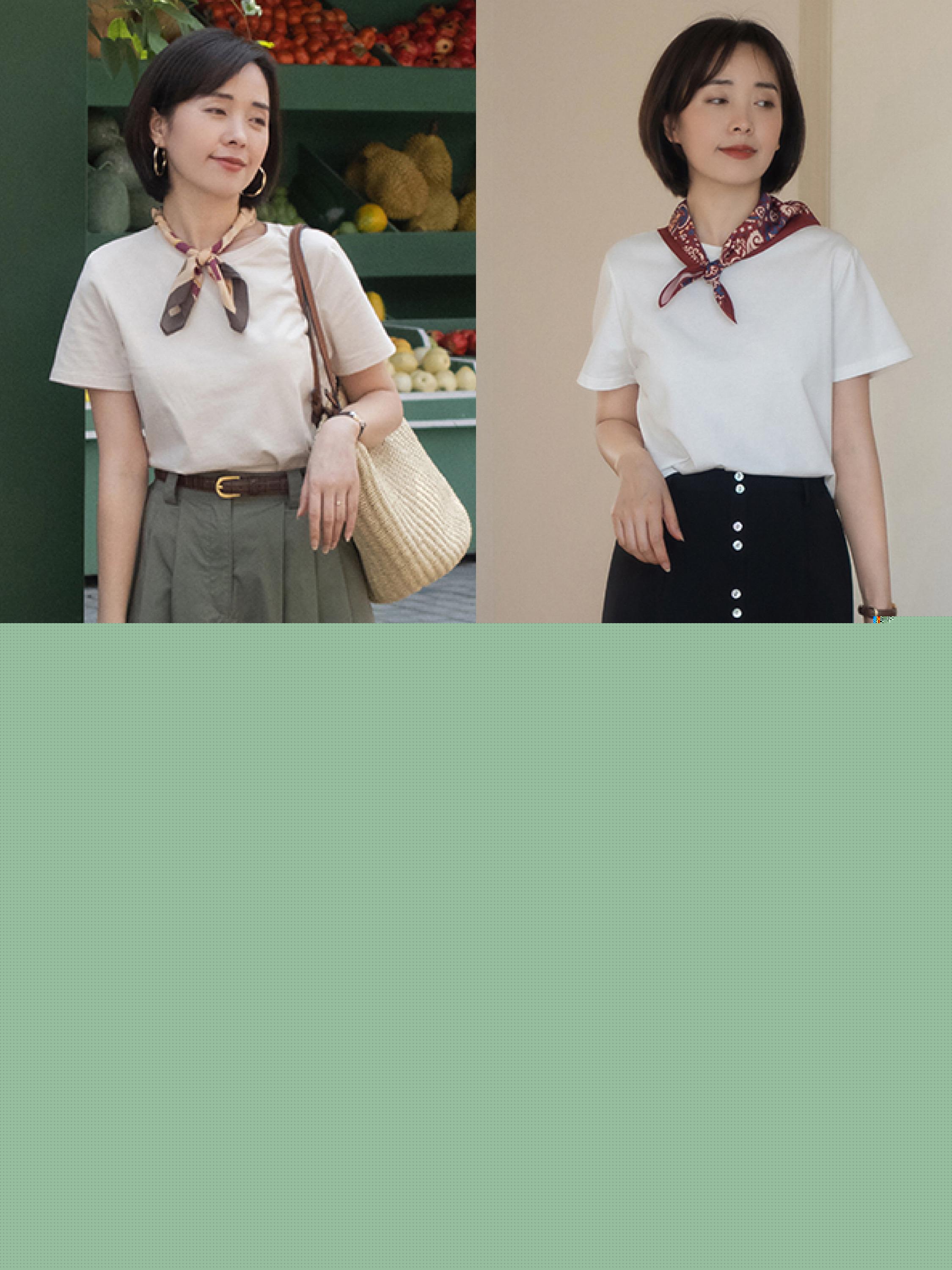 Another thing to pay attention to is its style. To be honest, T-shirts come in tight styles, loose styles, short styles and long styles. We can only choose according to our personal height. Small people can wear more T-shirts. Try short styles to modify the proportions, and tall sisters can also choose oversized T-shirts, which are more lazy and casual, and can be worn in a variety of styles.