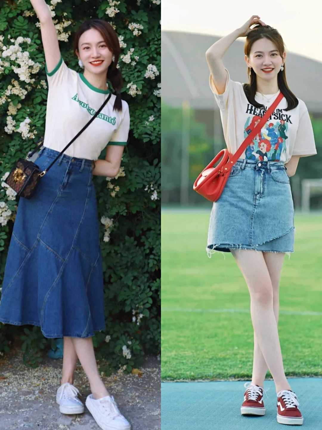 Whether you are wearing a shirt or a T-shirt, you can directly match it with a skirt. This kind of matching is quite elegant, and the skirts that these ladies match themselves with are basically like this An A-shaped version. This kind of skirt that is tight at the top and wide at the bottom covers up the problem of hip width and makes you look super slim!