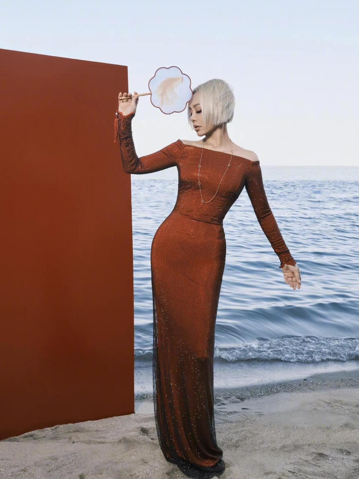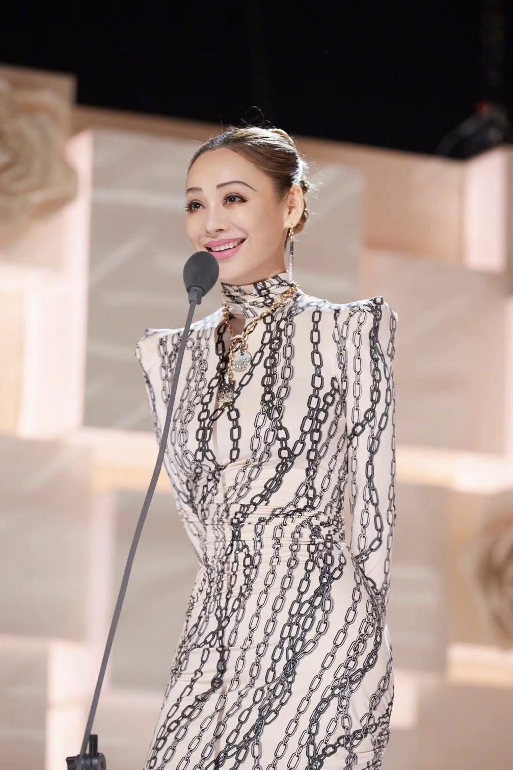 Jing Jing’s figure is quite good, and she stands out among her peers. This time she gave She paired it with a slim-fitting dress, which was decorated with chain patterns, which showed her full personality. The dress also incorporated shoulder pads, which modified her head-to-shoulder ratio, making her look very queen-like.