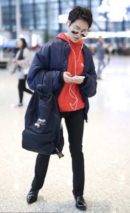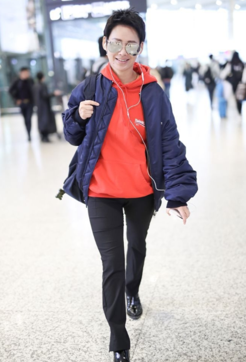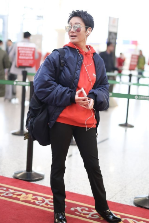 To be honest, as long as we When matching, try different styles and challenge yourself, so that you can discover your own unique charm. The outfits you wear in quiet daily life are also very bold. This time, you let yourself go and wear a fashionable navy blue dress. Wearing a cotton coat and a red sweatshirt, this look is casual and fashionable. With her short hair cut, she looks like a tomboy and has a particularly aura.