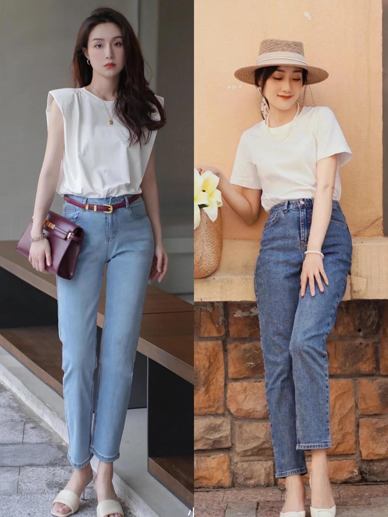 Jeans come in many colors. It is recommended that you try more of these light blue jeans in the summer. Light blue is more refreshing and the style is simpler when worn. Pair these light blue jeans with a white T-shirt for a simple and simple look. It’s fashionable and still very fresh.