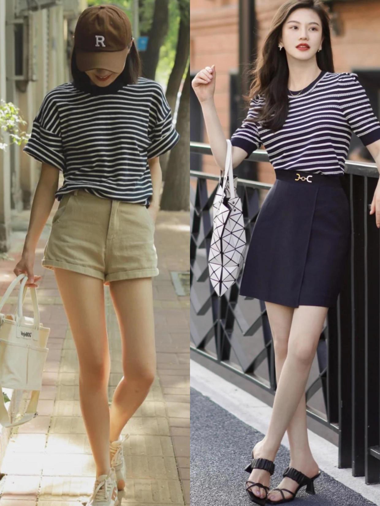 If you want to say that the most popular T-shirt this year, it must be this striped item. The striped T-shirt is very refreshing and simple to wear, while the solid color T-shirt is a bit monotonous. , and this kind of striped T-shirt has a strong design, but the direction of the stripes is also different. Vertical stripes may make you look slimmer, so fat sisters should try not to wear horizontal stripes.