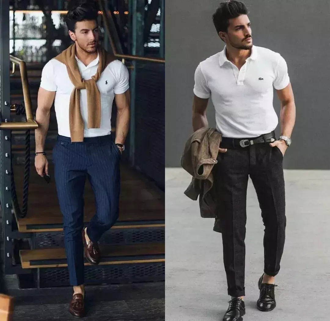 If you like to wear knitted clothes, you should pay attention to them. 90% of them are knitted styles. The waist of a Polo shirt is made to be elastic, so matching pants is the key. Please do not choose low-waisted pants. The mid-waist is just right. The length of the Polo shirt is best just to cover the position where the belt is fastened. Pay attention to this Just pay attention to the issue of proportion.