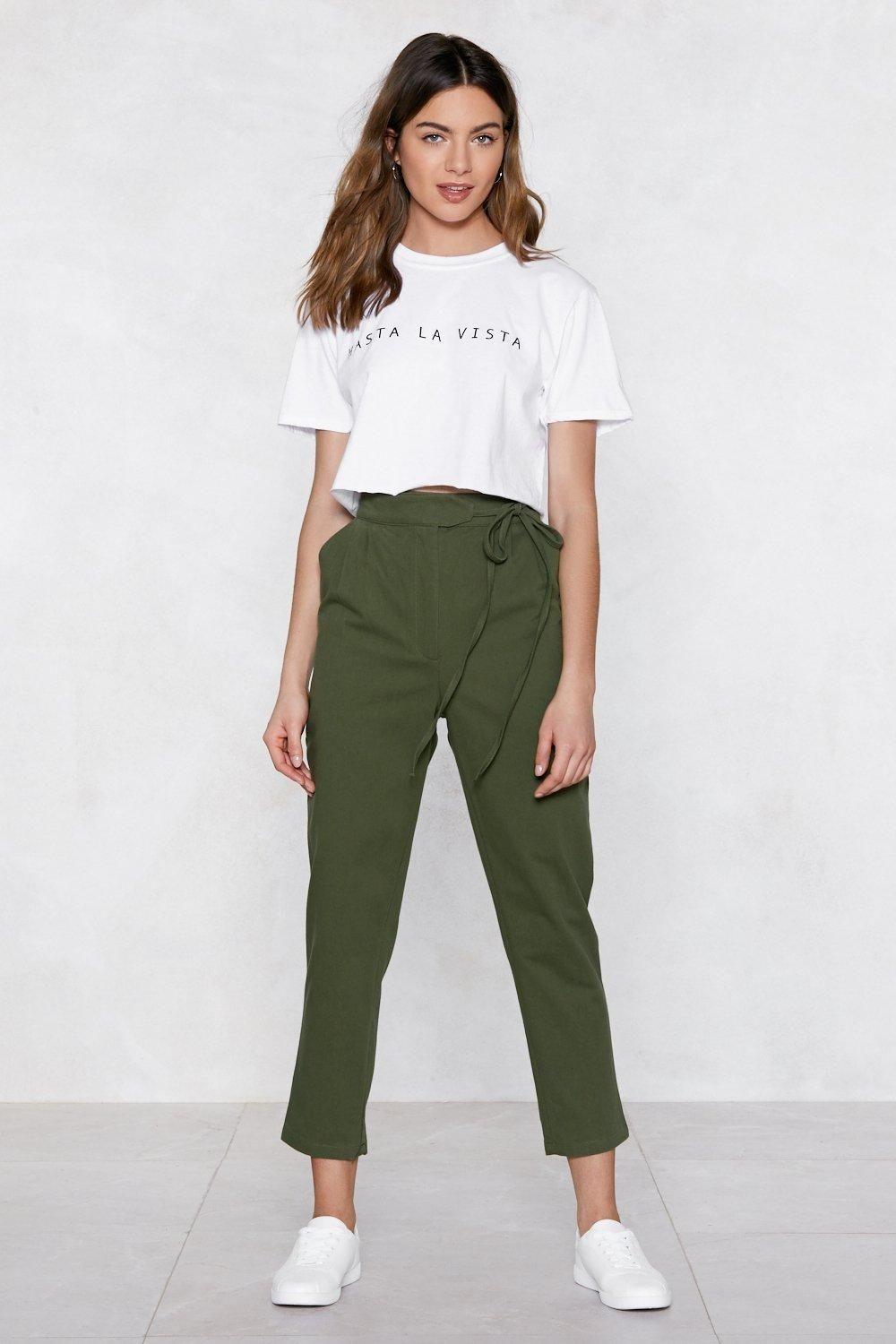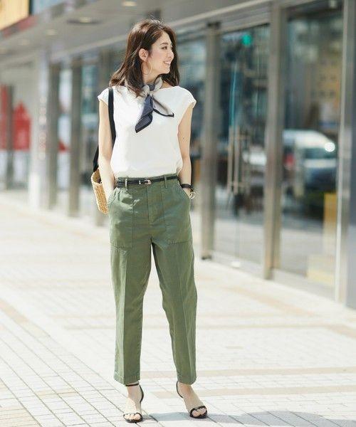 The low-waisted trousers have a slightly loose fit. They won’t look bloated when worn, and they will slim and slim your legs. leg. There is a small belt around the waist to embellish it, so it doesn’t feel monotonous. The dark green color is more eye-opening, and the field of vision is broad and not limited.