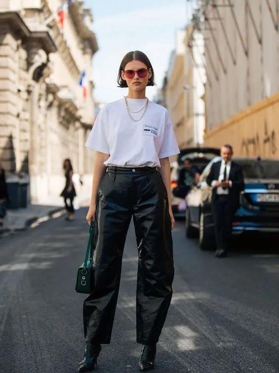 However, it is not recommended to choose leather pants, whether they are tight or wide-legged. It’s not that it doesn’t look good, it’s that it’s difficult for ordinary people to control. In fact, she doesn’t look very good dressed like this, so what’s more, what about us ordinary people? But you can control the length, such as cycling pants or shorts.