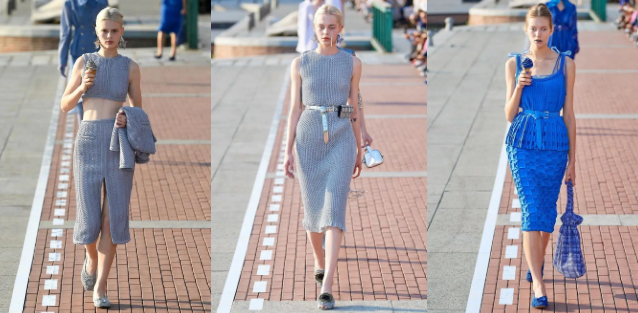 As shown in the picture, while imitating the texture of twill fabric, pleat weaving is added during the knitting process to show the effect of torn silk, And denim fiber yarns are combined to create a vintage feel. Cowboy style. Because knitted fabrics have good elasticity, they are more comfortable than twill denim and can better reflect the design characteristics of knitted fabrics.