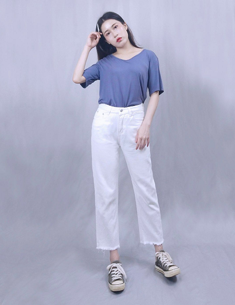 Although this high round neck design is not recommended for everyone to try, it does not mean that everyone should relegate round neck T-shirts to the shadows. In fact, a round neck design that leaves some room for skin exposure at the neck and clavicle is a very good choice and does not pose a high risk of making you look fat. You can go with it with confidence. wear.