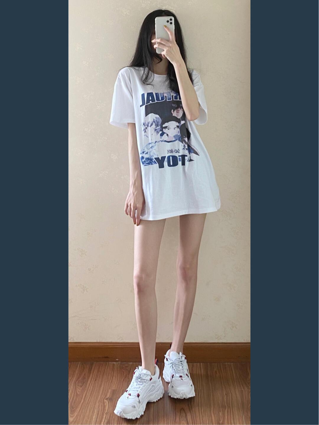 Other factors After selecting everything, it’s time to look at the choice of clothing length. Under the influence of the disappearing bottoms series, more and more girls like this long T-shirt style that can cover their buttocks. You don’t need to worry about matching. Just pair it with shorts and you can go out beautifully. How could such a fashionable and convenient item not become a popular style among T-shirts? .